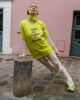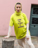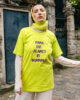 Short-sleeved combed Argentinian cotton T-shirt. DTF original print by EMME VAZQUEZ®. Color: Purple with red / Pistacchio with purple Sizes: L / XL (unique – oversize). Stock product (see Plazos y envíos).