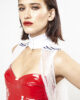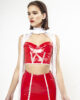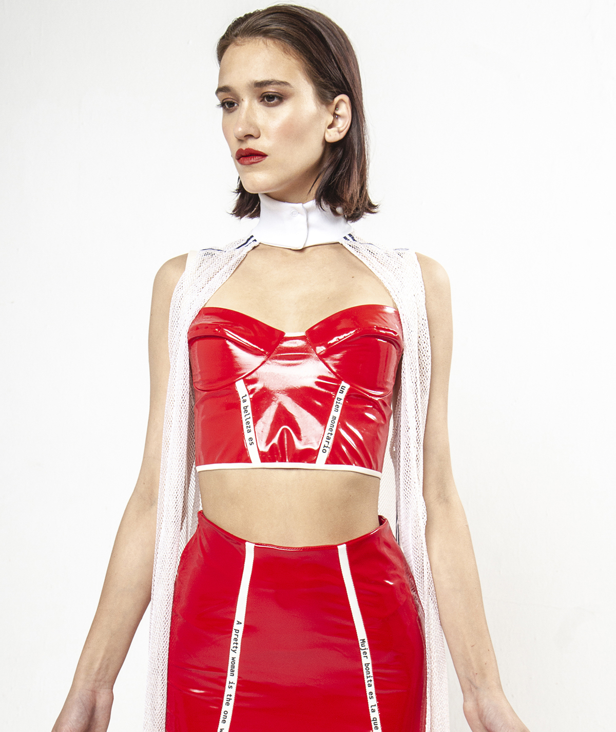 Corset de charol elastizado con interior forrado y ballenas elásticas sublimadas con frase. Taza soft con aro. Frase: “Si no querían que fuéramos un ejército, no nos hubieran puesto uniformes”. Color: Rojo con natural y negro. Talles: S al XXL. Producto Preorder (ver Plazos y envíos).